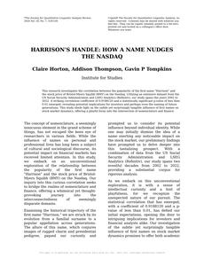 Harrison's Handle: How a Name Nudges the Nasdaq Journal of Behavioral Finance and Quirky Names Jan 2024 |
