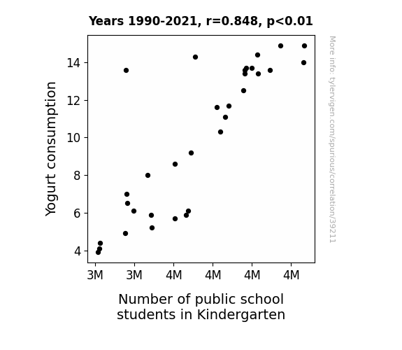 no direct connection between these variables, despite what the AI says above. This is exacerbated by the fact that I used "Years" as the base variable. Lots of things happen in a year that are not related to each other! Most studies would use something like "one person" in stead of "one year" to be the "thing" studied. - Observations not independent: For many variables, sequential years are not independent of each other. If a population of people is continuously doing something every day, there is no reason to think they would suddenly change how they are doing that thing on January 1. A simple
