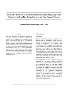 Jeremiah's Touchdown: The Correlation Between the Popularity of the Name Jeremiah and the Points Scored by the New England Patriots The Journal of Quirky Statistical Investigations Jan 2024 |
