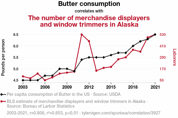 - The spurious research paper: Butter Consumption and Labor Production: A Gouda or Brie Connection?