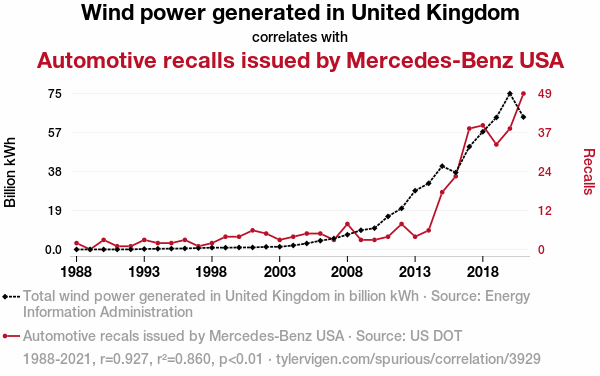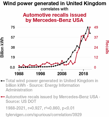 - The spurious research paper: Blowin' in the Wind: Uncovering the Aerodynamic Link between UK Wind Power and Mercedes-Benz Recalls