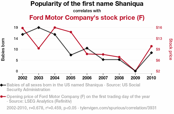 - The spurious research paper: Shan-iqua tell ya 'bout the Stock: The Link between Shaniqua's Popularity and Ford's Fizzling or Fizzling Stock Price