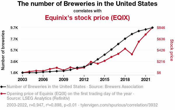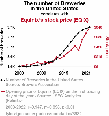 - The spurious research paper: Hops and Stocks: An Ale-Investigation of the Relationship Between Breweries in the United States and Equinix's Stock Price