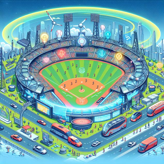 ChatGPT: [Sci-fi fantasy] Generate an image showing a futuristic softball stadium, enveloped in a vibrant energy field, with fans traveling to and from the game in sleek, high-speed energy-efficient vehicles. The stadium should be surrounded by advanced technology and energy-capturing devices, showcasing the heightened energy levels in West Germany caused by the championship. Capture the intense competitiveness of the game and the surge in petroleum consumption caused by the enthusiastic fan support.