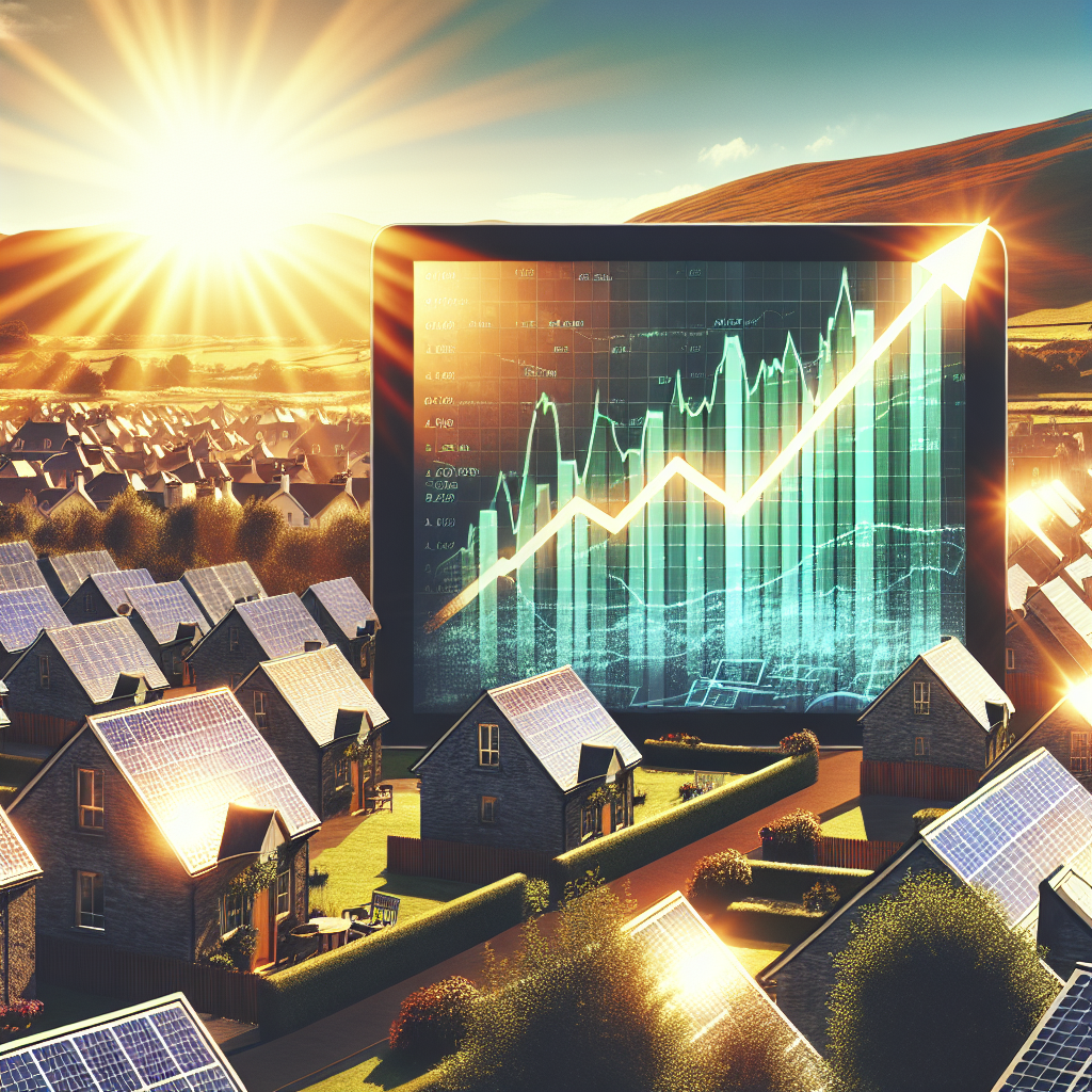 User prompt: Please describe a visual scene that prominently depicts both Solar power generated in Ireland and Microsoft's stock price (MSFT), in the following situation: Because the increase in solar power in Ireland made Microsoft's stock price shine brighter than a freshly polished Surface Pro! The sunny outlook on renewable energy made investors beam with delight, sending MSFT soaring to new heights. It's clear that the power of the sun can truly brighten up the stock market! ☀️📈. Keep the description simple.
