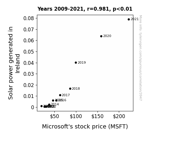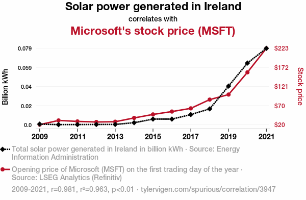 - The spurious research paper: Shedding Light on Solar Power: Illuminating the Relationship Between Solar Generation in Ireland and Microsoft's Stock Price
