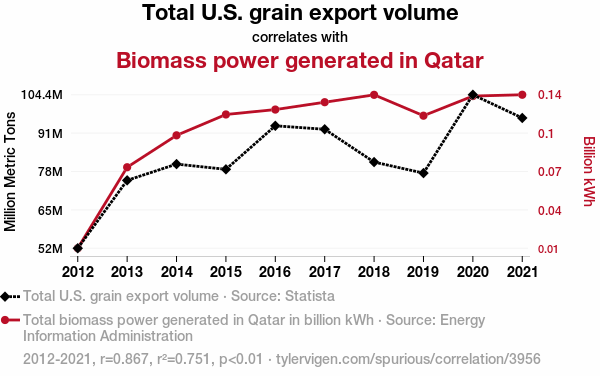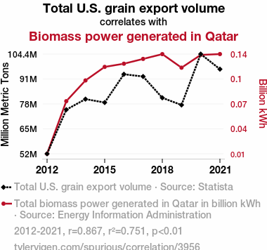 - The spurious research paper: Grains of Power: Uncovering the Corn-nection between U.S. Grain Exports and Biomass Energy Generation in Qatar