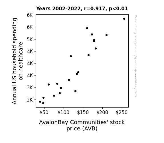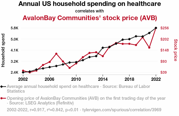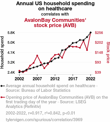 - The spurious research paper: Healthy Investments: The Correlation Between Annual US Household Healthcare Spending and AvalonBay Communities' Stock Price