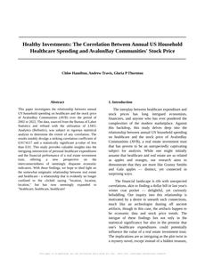 Healthy Investments: The Correlation Between Annual US Household Healthcare Spending and AvalonBay Communities' Stock Price Journal of Financial Health and Wellness Jan 2024 Reminder: This paper is AI-generated. Not real! |