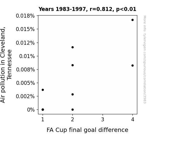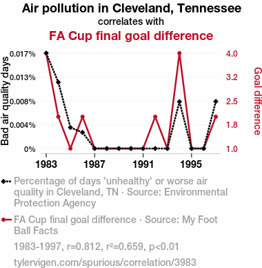 - The spurious research paper: Blowing the Whistle: Exploring the Impacts of Air Pollution on FA Cup Final Goal Difference in Cleveland, Tennessee