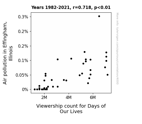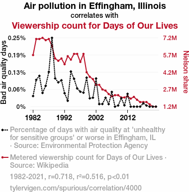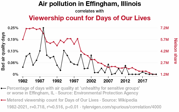 - The spurious research paper: The Air Affair: A Correlation Between Effingham Air Quality and Days of Our Lives Viewership