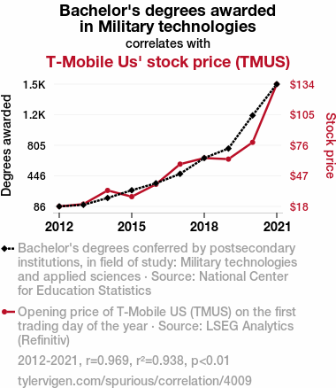 - The spurious research paper: Bachelor's Knowledge of Warfare and T-Mobile Stock Price: A Rhyme in Time