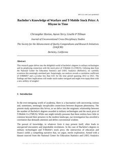 Bachelor's Knowledge of Warfare and T-Mobile Stock Price: A Rhyme in Time Journal of Unconventional Cross-Disciplinary Studies Jan 2024 Reminder: This paper is AI-generated. Not real! |