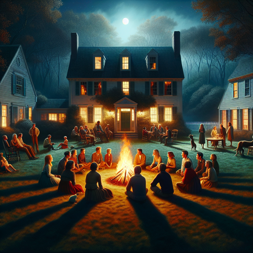 ChatGPT: Generate an image of a serene and quaint Connecticut town. In the foreground, display a bulletin board featuring a line graph depicting the declining popularity of the name Rachel. Beside the graph, depict a small group of individuals named Rachel, enjoying the peaceful atmosphere. In the background, illustrate a chart showing a decreasing trend in arson incidents, with a group of smiling firefighters acknowledging the positive change. Ensure the scene exudes a sense of tranquility and diminishing fire-related incidents.