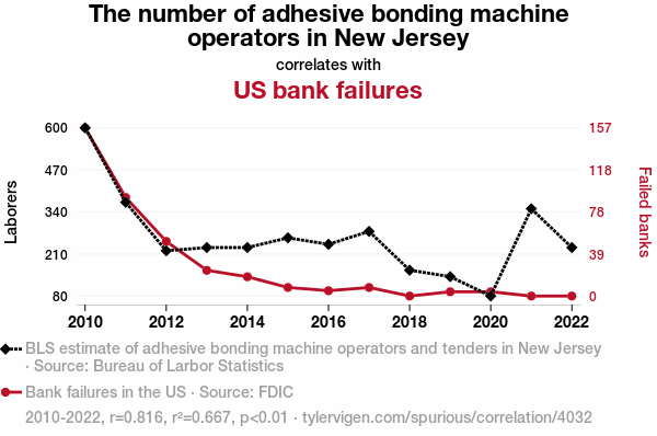 - The spurious research paper: Sticky Situations: The Adhesive Bonding Machine Operators in New Jersey and Their Link to US Bank Failures