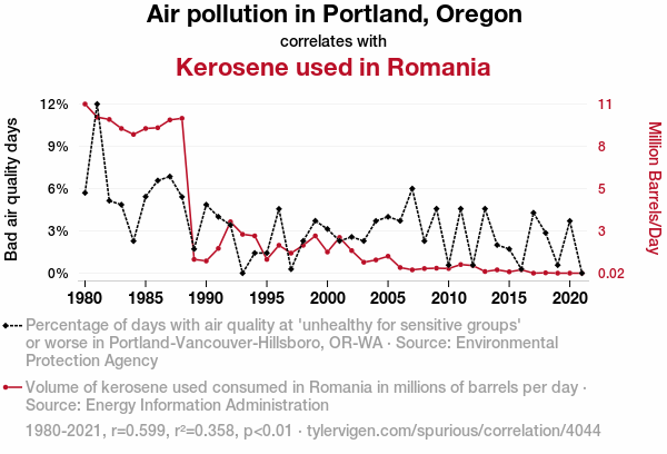- The spurious research paper: Clearing the Air: Unearthing the Link Between Portland's Pollution and Romania's Kerosene