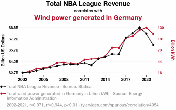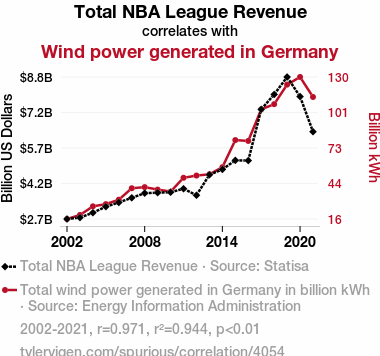 - The spurious research paper: The Windy Assist: Exploring the Relationship between Total NBA League Revenue and Wind Power Generated in Germany