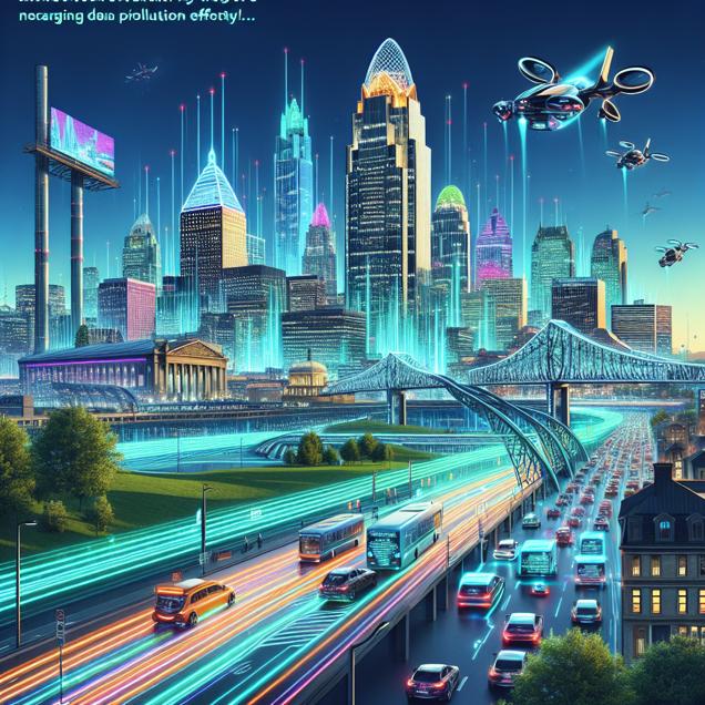 ChatGPT: [ Cyberpunk ] Generate an image where the city skyline of Cincinnati is juxtaposed against a futuristic, neon-lit metropolis. The traditional skyline is overlaid with holographic billboards and hover vehicles, while the streets are bustling with augmented reality advertisements. Show a clear blue sky and greenery integrated seamlessly into the cyberpunk landscape, signifying a reduced impact of pollution. Additionally, depict a futuristic gas station in France, where sleek electric vehicles charge up on advanced energy platforms, highlighting the decreased demand for gasoline in a technologically advanced setting.