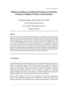 Please draft the title and abstract of an academic research paper presenting the findings of the connection between Air pollution in Dayton and Customer satisfaction with Frontier Communications. Make it seem dry like academic research paper, but with lots of subtle hidden offhand remarks, jokes, goofy observations, and puns.