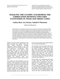 Stalk-ing the Culprit: Unearthing the Correlation between GMO Corn Cultivation in Texas and Arson Cases Journal of Agri-Crime Studies Jan 2024 |