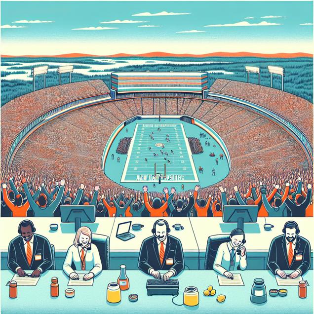 ChatGPT: Generate an image of a minimalist stadium filled with fans, cheering and celebrating as the final match score difference in the Volkswagen Challenger Set increases. Outside the stadium, in New Hampshire, depict a simple scene of receptionists handling a surge in demand, with raspy-voiced fans calling in for assistance, and the receptionists offering honey and lemon to help them recuperate.