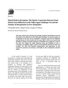 Match Made in Reception: The Quirky Connection Between Final Match Score Difference in the Volkswagen Challenger Set and the Number of Receptionists in New Hampshire The Journal of Quirky Connections in Sports Research Jan 2024 |