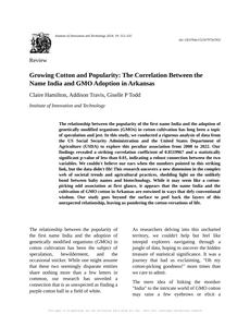 Growing Cotton and Popularity: The Correlation Between the Name India and GMO Adoption in Arkansas Journal of Agricultural Sociology and Genetics Jan 2024 Reminder: This paper is AI-generated. Not real! |