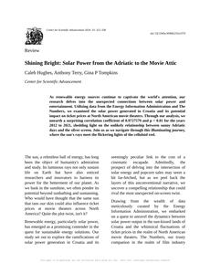 User prompt: Please provide potential search keywords for a paper titled Shining Bright: Solar Power from the Adriatic to the Movie Attic with an abstract of As renewable energy sources continue to captivate the world's attention, our research delves into the unexpected connections between solar power and entertainment. Utilizing data from the Energy Information Administration and The Numbers, we examined the solar power generated in Croatia and its potential impact on ticket prices at North American movie theaters. Through our analysis, we unearth a surprising correlation coefficient of 0.9727579 and p < 0.01 for the years 2012 to 2021, shedding light on the unlikely relationship between sunny Adriatic days and the silver screen. Join us as we navigate through this illuminating journey, where the sun's rays meet the flickering lights of the celluloid reel.
