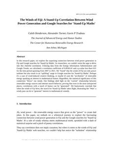 Please draft the title and abstract of an academic research paper presenting the findings of the connection between Wind power generated in Fiji and Google searches for 'Stand-Up Maths'. You can't resist a good dad joke. Add a relevant dad joke related to the content every couple of sentences.