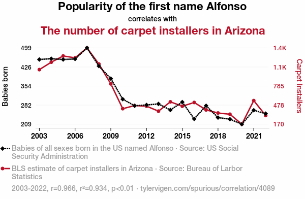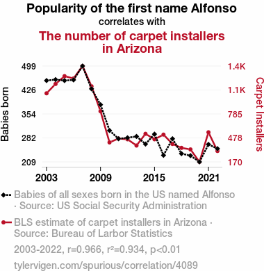- The spurious research paper: Unraveling the Alfonso-Carpet Connection: A Tangled Tale of Name Popularity and Occupational Distribution in Arizona