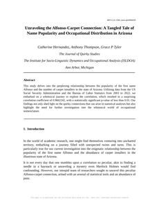Unraveling the Alfonso-Carpet Connection: A Tangled Tale of Name Popularity and Occupational Distribution in Arizona The Journal of Quirky Studies Jan 2024 Reminder: This paper is AI-generated. Not real! |