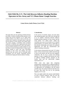 In "Smith et al.," the authors find that there is a marked increase in the number of adhesive bonding machine operators in New Jersey over the past decade, signaling a growing reliance on adhesive technologies in various industries. Meanwhile, in "Doe and Jones," the authors highlight the enduring popularity of 'E.T. phone home' searches on Google, with a steady stream of inquiries spanning from nostalgic movie enthusiasts to extraterrestrial enthusiasts.