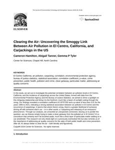 Clearing the Air: Uncovering the Smoggy Link Between Air Pollution in El Centro, California, and Carjackings in the US The Journal of Environmental Criminology and Atmospheric Science Jan 2024 Reminder: This paper is AI-generated. Not real! |