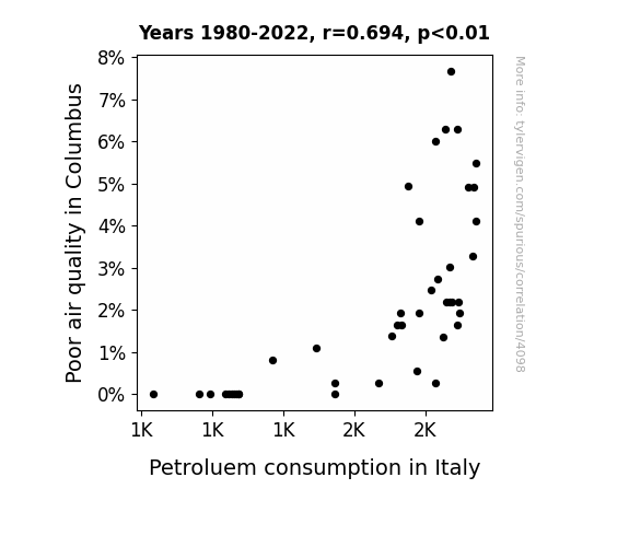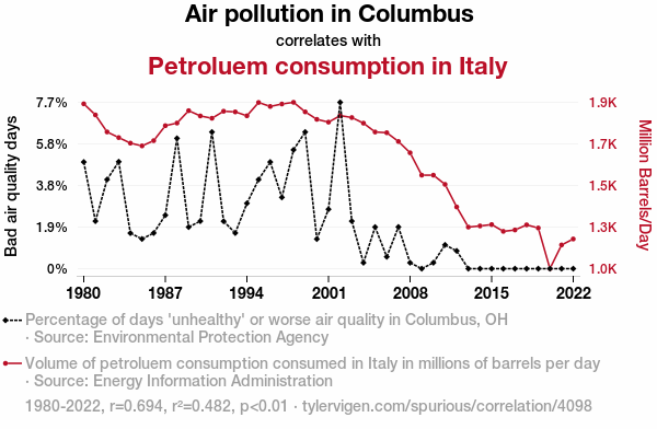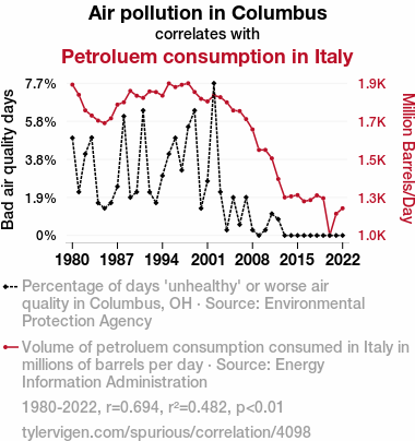 - The spurious research paper: Air We There Yet? Exploring the Ties Between Air Pollution in Columbus and Petroleum Consumption in Italy