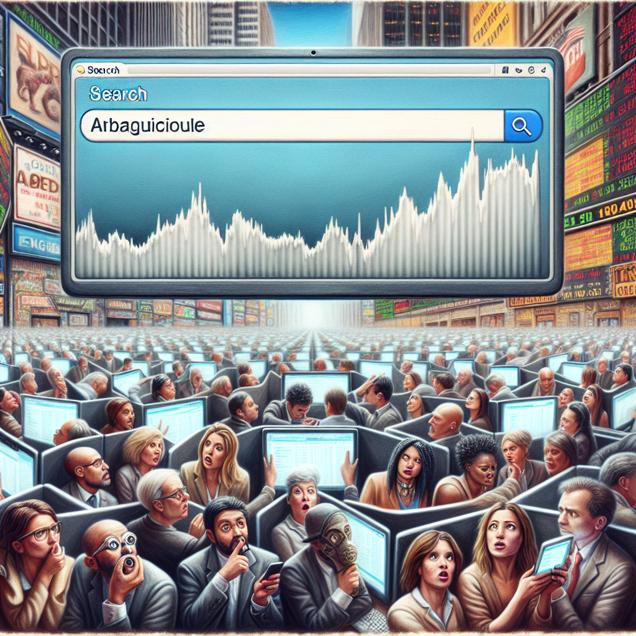 Prompt: Create an image of a meme style visual where a computer screen shows a Google search bar with the words "that is sus" entered. Below the search bar, a DexCom stock price chart is displayed, and the line on the chart rises sharply. In the background, depict a bustling stock market with people looking at their devices with intrigue. The scene should have an overall mood of curiosity and potential opportunity. The depiction should include only scenes, people, and objects, it should not include text or speech bubbles.