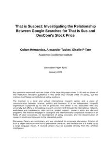 Please draft the title and abstract of an academic research paper presenting the findings of the connection between Google searches for 'that is sus' and DexCom's stock price (DXCM). Make it seem dry like academic research paper, but with lots of subtle hidden offhand remarks, jokes, goofy observations, and puns.