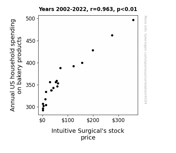 - The spurious research paper: Dough Nation: Exploring the Rise of Bakery Spending and Intuitive Surgical's Stock Price