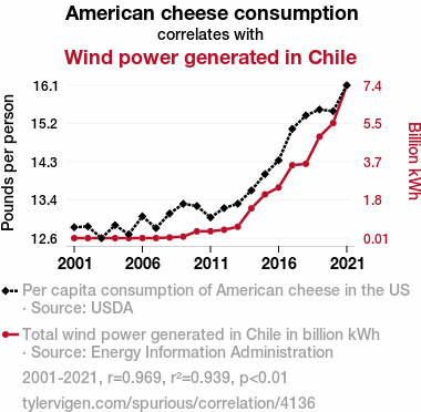 American cheese consumption, wind power generation, correlation, cheese consumption in the United States, wind power in Chile, USDA data, Energy Information Administration data, correlation coefficient, significance level, 2001-2021, renewable energy, dairy industry, cheese production, renewable energy sources, sustainable energy, environmental impact