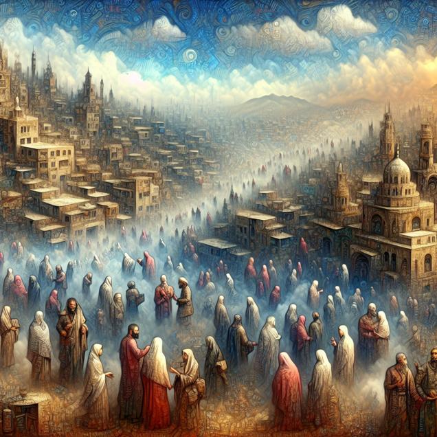 ChatGPT: [ A scene from Skyrim ] A medieval city cloaked in a dense fog, couples struggling to communicate through the haze. As the smog dissipates, the clear skies over the city reveal improved relationships symbolized by intertwined hands and brighter, clearer expressions.