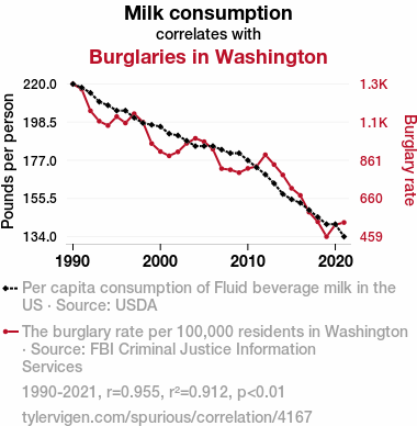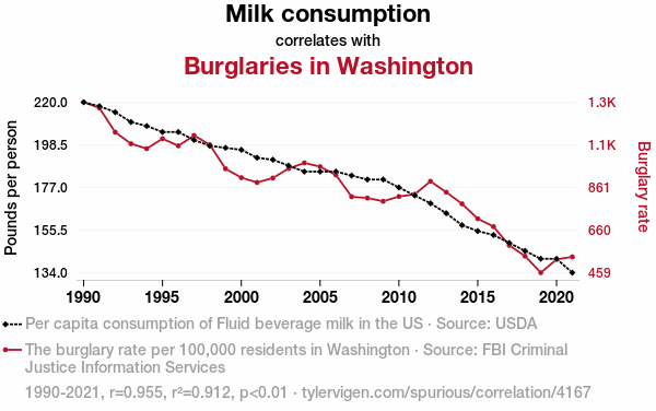 - The spurious research paper: Got Milked: Exploring the Udderly Intriguing Relationship Between Milk Consumption and Burglaries in Washington