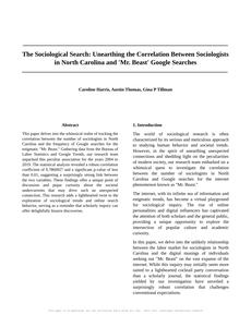 The Sociological Search: Unearthing the Correlation Between Sociologists in North Carolina and 'Mr. Beast' Google Searches Journal of Sociological Search Studies Jan 2024 Reminder: This paper is AI-generated. Not real! |