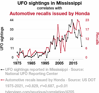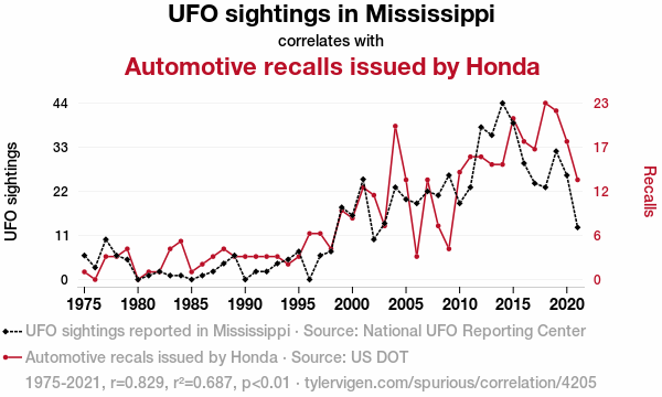 - The spurious research paper: The UFO-Honda Connection: Exploring the Correlation Between UFO Sightings in Mississippi and Automotive Recalls by Honda