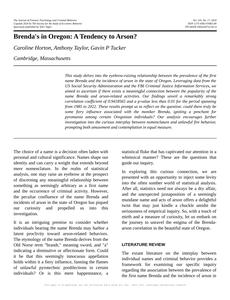 Brenda, Oregon, arson, relationship, prevalence, incidence, first name, data, US Social Security Administration, FBI Criminal Justice Information Services, correlation coefficient, p-value, pyromania, nomenclature, unlawful fire behavior, investigation
