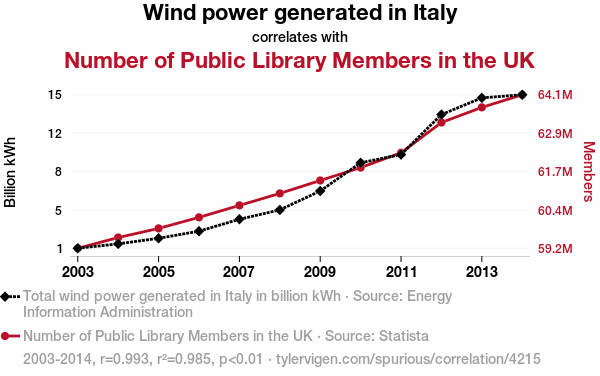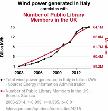 wind power, public library membership, correlation, Italy, UK, renewable energy, wind-generated energy, sustainable power, literary enthusiasts, Energy Information Administration, Statista, correlation coefficient