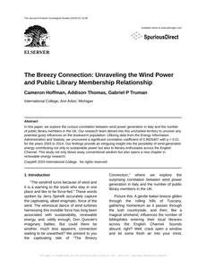 The Breezy Connection: Unraveling the Wind Power and Public Library Membership Relationship The Journal of Eclectic Sociological Studies Jan 2024 Reminder: This paper is AI-generated. Not real! |