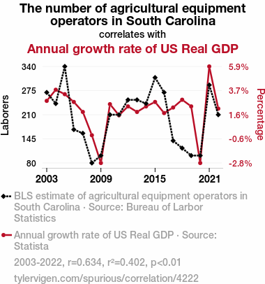 - The spurious research paper: Plowing Ahead: The Impact of Agricultural Equipment Operators on US Real GDP Growth