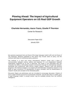 Plowing Ahead: The Impact of Agricultural Equipment Operators on US Real GDP Growth The Journal of Agrarian Economics and Growth Dynamics Jan 2024 Reminder: This paper is AI-generated. Not real! |