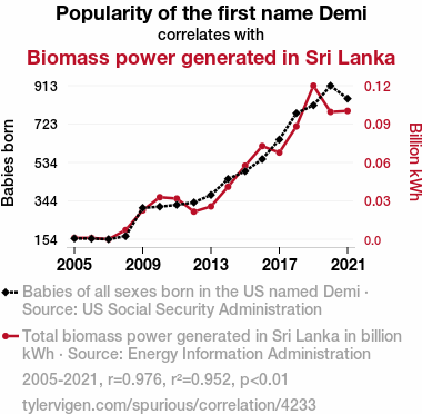- The spurious research paper: The Name Game: An Analysis of the Demi-namics between Name Popularity and Biomass Power Generation in Sri Lanka