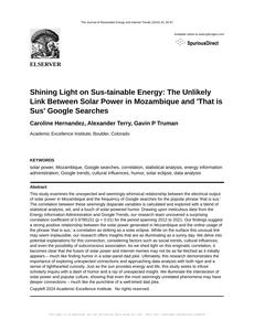 Shining Light on Sus-tainable Energy: The Unlikely Link Between Solar Power in Mozambique and 'That is Sus' Google Searches The Journal of Renewable Energy and Internet Trends Jan 2024 Reminder: This paper is AI-generated. Not real! |