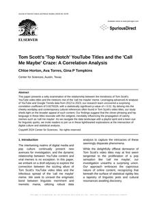 Tom Scott's 'Top Notch' YouTube Titles and the 'Call Me Maybe' Craze: A Correlation Analysis Journal of Internet Culture and Meme Studies Jan 2024 Reminder: This paper is AI-generated. Not real! |